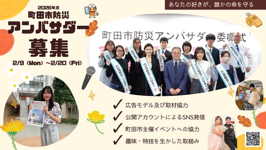 町田市におけるより一層の防災情報の発信等を担っていただけるよう、新たにアンバサダーを募集します。