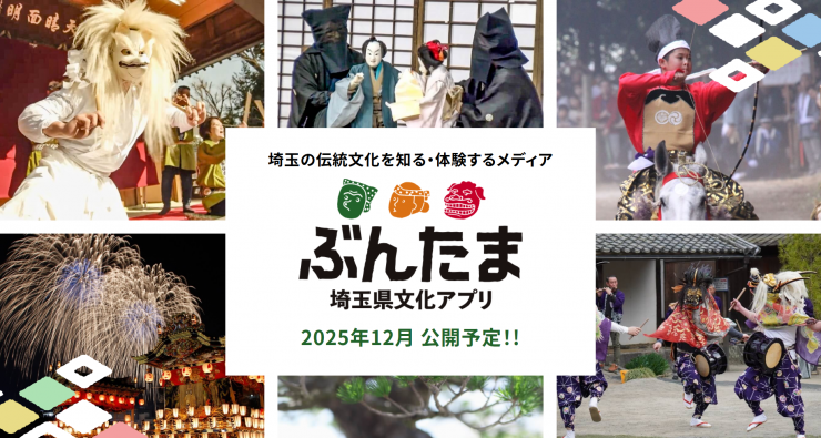 埼玉県には、400を超える伝統芸能団体が存在するなど、豊富で多彩な文化が地域に根付いています。 このたび、多くの方々に県内各地の伝統文化を知り、体験していただくため、新たに埼玉県文化アプリ「ぶんたま」を開発するとともに、イベント情報などを写真や動画と共に発信します。