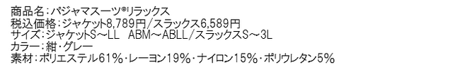 ■『パジャマスーツ(R)リラックス』が新登場!広がるパジャマスーツ(R)の選択肢で、今までよりさらにリラックス。