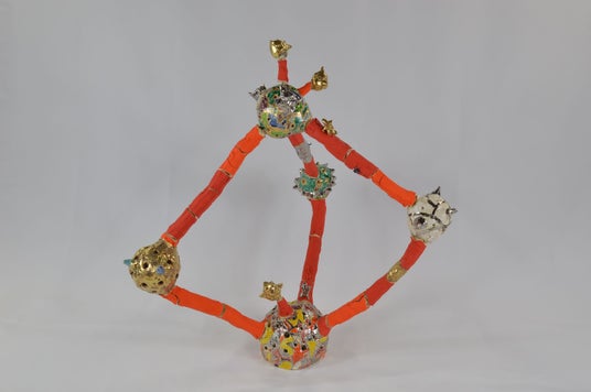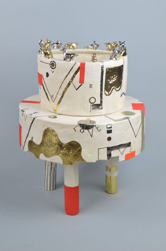 《こわれているけれどかがやきながらここにいます VOL12》 巾60cm 奥行40cm 高さ65cm 陶土、顔料、金、プラチナ