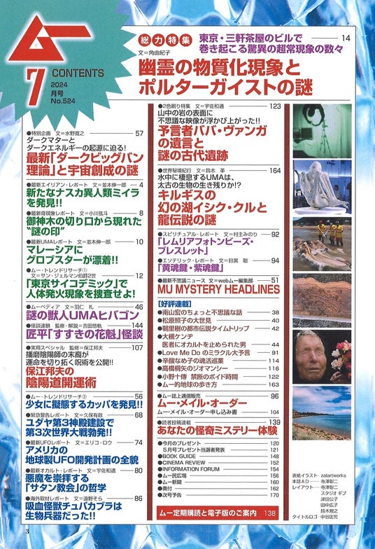 株式会社 ワン・パブリッシング(東京都港区/取締役社長:松井謙介)は、2024年6月7日(金)に月刊「ムー」7月号(定価:870円(税込))を発売いたしました。月刊「ムー」は世界の謎と不思議に挑戦するスーパーミステリー・マガジンです。