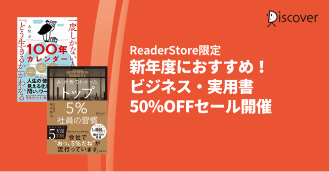 4/1よりReaderStore限定で、「新年度におすすめ!ビジネス・実用書50%OFFセール」を開催します。ビジネス書や実用書を中心としたディスカヴァーの電子書籍200タイトル以上が50%オフになる割引キャンペーンです。
