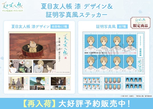 大人気の「夏目友人帳 漆 デザインステッカー(各話毎に1種)&証明写真風ステッカー(全7種)」や「夏目友人帳 ~葉月の記~ Nintendo Switch用ソフト」、その他完売していた人気商品の再販売を「夏目友人帳 アニメ公式オンラインストア https://natsume-animestore.jp/products?widget_id=3214」 にて7月1日(火)12時より販売開始いたします。