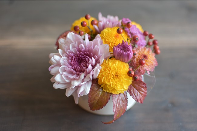 菊花展プレミアムツアー『菊めぐり』 三溪園では初開催となるこのツアーでは、三溪園の学芸員、フラワーデザイナー 五十 嵐道子氏、菊づくり名人とともに菊花展の鑑賞のほか、非公開の建物内で菊花の手入 れ体験や抹茶と菓子もお楽しみいただきます。 さらにはフラワーデザイナー制作のアレンジメントフラワーのお土産も!菊花の魅力 を、より深く知り、親しめる企画です。