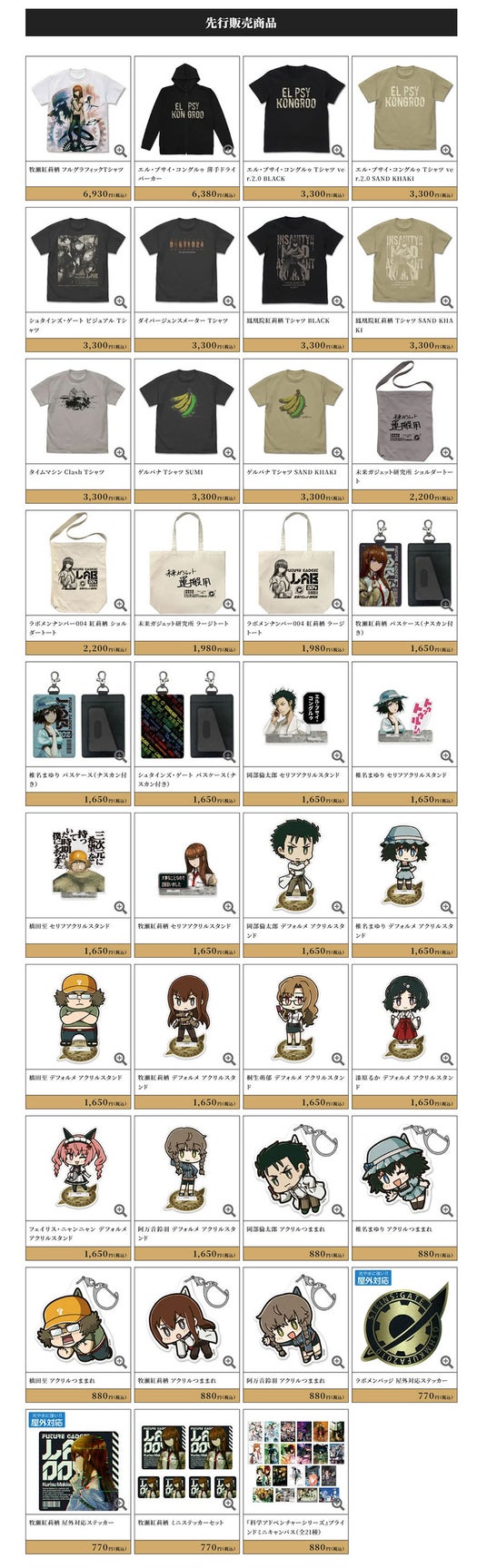 ※「エル・プサイ・コングルゥ 薄手ドライパーカー」「エル・プサイ・コングルゥ Tシャツ ver.2.0(BLACK/SAND KHAKI)」「鳳凰院紅莉栖 Tシャツ(SAND KHAKIのみ)」はアトレ秋葉原では会期途中からの販売になります。