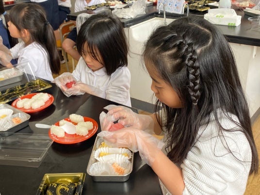 授業の一環として、子どもたちは実際に店舗でも行われているフローに沿ったすしづくり体験をしました。