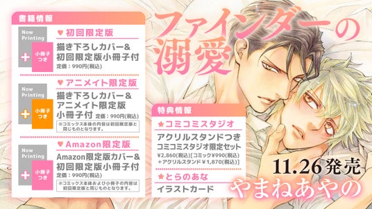 株式会社リブレ(本社:東京都新宿区、代表取締役社長:太田歳子)は2024年11月26日にコミックス「ファインダーの溺愛」(著:やまねあやの)を発売いたします。