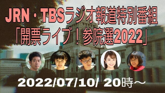 参議院選挙が行われる7月10日(日)TBSラジオでは20時から5時間にわたって選挙特番を生放送します。