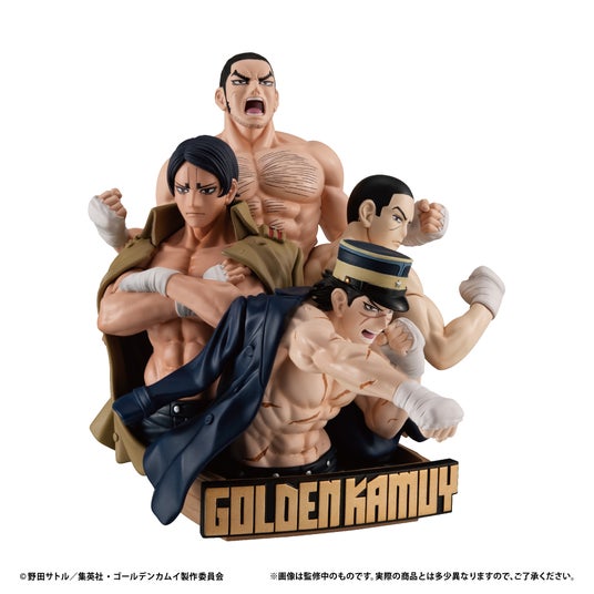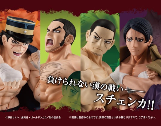 同商品は、TVアニメ『ゴールデンカムイ』の名シーンを再現した、全高約112mmのハイクオリティなスタチューフィギュアで、漢たちの意地と力がぶつかり合う格闘技、“スチェンカ”に挑む杉元・谷垣・月島・鯉登の4人を立体化しました。正面からはもちろん、360度どこから見ても迫力満点でその圧倒的存在感を楽しめます。風を切る拳、鍛え上げられた肉体、闘志昂る咆哮…『ゴールデンカムイ』の魅力的な登場人物を結集させました。作中の熱気まで伝わるこだわり抜いた造形になっております。ぜひお手元でじっくりとご堪能ください。