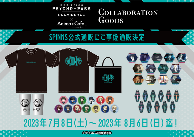 アパレル事業を展開する株式会社ヒューマンフォーラム(本社:京都市中京区 代表取締役会長:出路 雅明)が運営するアパレルブランド「SPINNS」は、『劇場版 PSYCHO-PASS サイコパス PROVIDENCE』のコラボレーションカフェの限定アイテムをSPINNS公式通販にて販売する。
