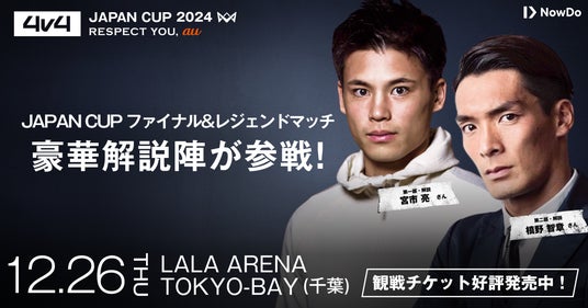 新しい未来のテレビ「ABEMA(アベマ)」は、12月26日(木)より千葉県・船橋市の多目的アリーナ“LaLa arena TOKYO-BAY”にて開催する、本田圭佑さんが育成年代向けに開発した4人制サッカーの全国大会「4v4 JAPAN CUP 2024 RESPECT YOU, au(以下、4v4 JAPAN CUP)」の模様と、本田さんをはじめ三浦知良選手などサッカー界のレジェンド選手たちが出場するスペシャルマッチとレジェンドマッチを無料生中継いたします。このたび、「ABEMA」オリジナル解説に横浜F・マリノス所属の宮市亮選手ならびに元サッカー日本代表の槙野智章さんの出演が決定いたしました。