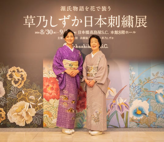 「日本刺繍は心模様を表現するアート」と語り、日本刺繍の普及活動を続けてきた、草乃しずかさんが作家活動を始めて50年の節目に、「草乃しずか日本刺繍展 源氏物語を花で装う」を日本橋高島屋で2024年8月30日(金)から9月16日(月・祝)まで開催いたします。本展では「源氏物語」に登場する姫たちに想いを寄せ、それぞれのイメージでひと針ひと針刺繍した振袖をはじめ、几帳、掛軸、屏風など約200点を展示・紹介いたします。