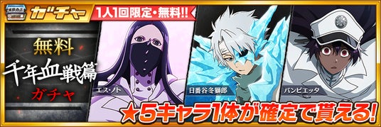 期間中1人1回限定、無料で引ける「無料千年血戦篇ガチャ」を実施!