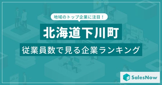「誰もが活躍できる仕組みをつくる。」をミッションに掲げ、セールスチームの武器となるデータベース「SalesNow」を展開する株式会社SalesNow(本社:東京都渋谷区、代表取締役:村岡功規、以下「SalesNow」)は、国内540万社の企業情報を完全網羅した日本最大級のデータベース「SalesNow DB」より、北海道下川町に本社を置く企業の従業員数ランキングを調査しました。