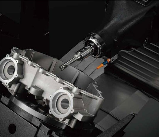 また、治具エリアの拡大により、自動車部品をはじめとする幅広いアプリケーションに対応できるほか、加工部品の形状が変更された場合でも柔軟に対応することが可能。さらに、大型の傾斜ロータリーテーブルを搭載しながらも、主軸30番のマシニングセンタとして高い生産性を維持しており、一般的なマシニングセンタに比べてサイクルタイムを約40%、消費電力を約50%削減している。(*2)