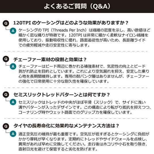 ● 120TPI高密度ケーシングでしなやか&快適な乗り心地