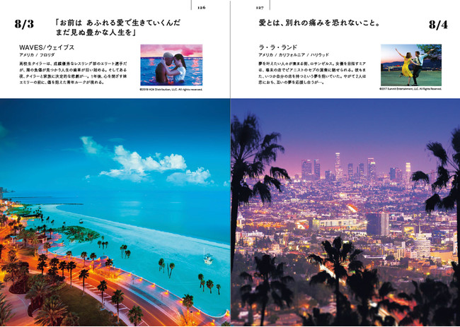 春は出会いと別れを描いた作品、夏は美しい海やヴィヴィッドカラーの風景など、365日それぞれの日に合わせた映画とその舞台となった風景を収録。 国内最大級の映画レビューサービス“Filmarks(フィルマークス)”が選定した、とっておきの作品が勢揃いです。