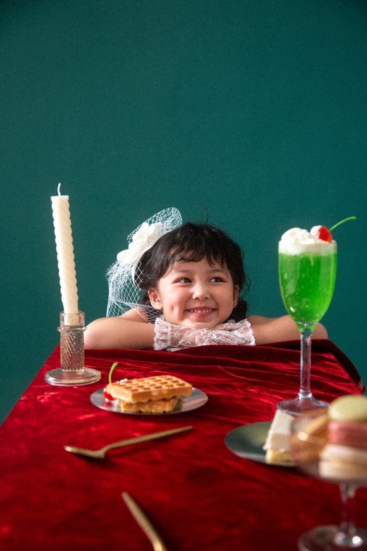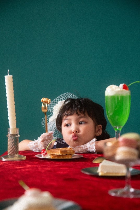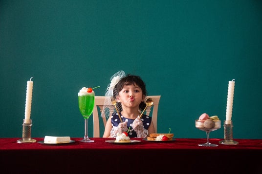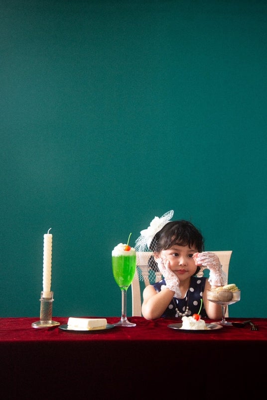 空間の色味はもちろん、喫茶に出てくるようなカトラリーや食品、雑貨を組み合わせることでよりビジュアルの世界観を演出します。