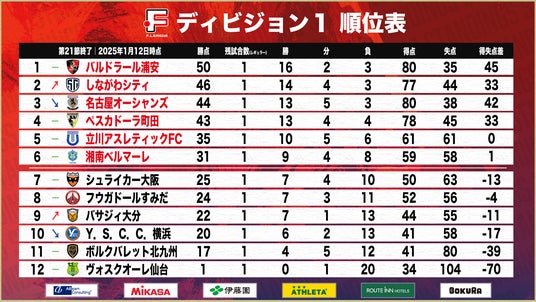 ■現在の順位表※第21節終了|1月12日時点
