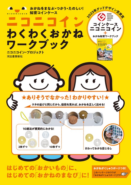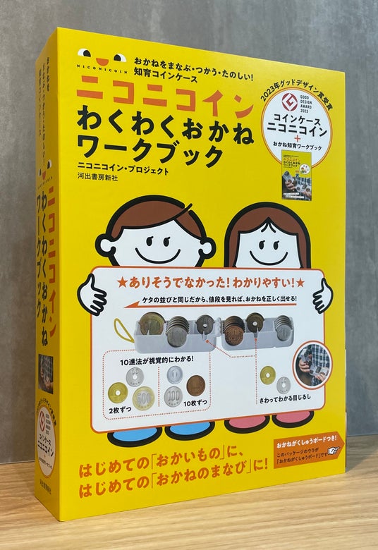 しかし、何から教えたらよいのか分からないという親御さんのために、楽しい知育教材セット『ニコニコイン わくわくおかねワークブック』を発売しました。