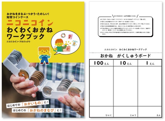 書籍「ニコニコイン わくわくおかねワークブック」(左)と「おかねがくしゅうボード」(右)