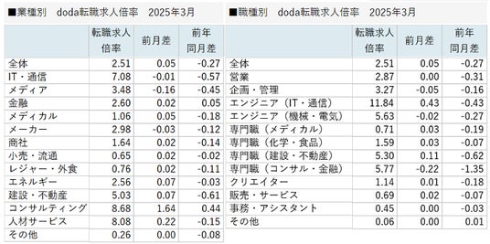 パーソルキャリア株式会社が運営する転職サービス「doda(デューダ)」(編集長:桜井 貴史)は、2025年3月の転職求人倍率をまとめた「doda転職求人倍率」を発表いたします。