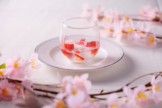 お口直しにぴったりなデザート前の一品は、バニラパンナコッタに桜ゼリーと苺を合わせたグラスデザートをご提供いたします。桜の香りと苺のフレッシュな酸味が調和し、食後の楽しみをさらに引き立てます。