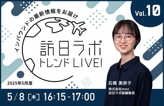 業界最大級のインバウンドビジネスメディア「訪日ラボ」及び 店舗向け集客一元化プラットフォーム「口コミコム」を運営する株式会社mov(代表取締役:渡邊 誠、本社:東京都渋谷区、以下mov)は、5月8日(木)16:15-17:00よりオンラインセミナーを開始します。参加費は無料です。