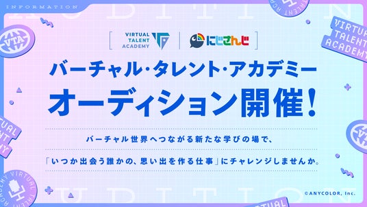 ANYCOLOR株式会社(本社:東京都港区 代表取締役:田角陸、以下「当社」)はVTuber / バーチャルライバーグループ「にじさんじ」のノウハウを活かし、VTuber / バーチャルライバーとして活躍するためのタレント育成プロジェクト「バーチャル・タレント・アカデミー(VTA)」オーディションを開催いたします。本日2024年2月22日(木)から候補生を募集いたします。