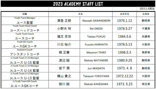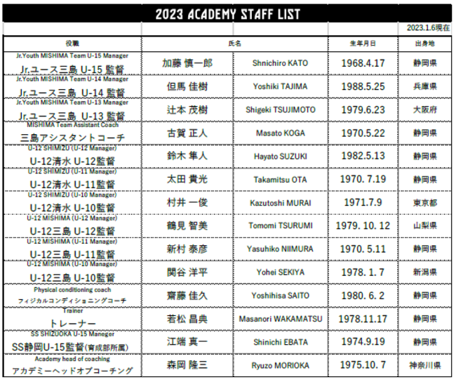 2023-01-16 清水エスパルス 2023 シーズン アカデミースタッフ新体制のお知らせ Tweet このたび、2023 シーズン アカデミースタッフの新体制が決定しましたので、下記の通りお知らせいたします。 企業プレスリリース詳細へ PR TIMESトップへ 公式ツイッター Follow @Straightpress 最新情報をTwitterで受け取ろう! 公式フェイスブックページ 最新情報をFacebookで受け取ろう! 前の記事 一覧へ戻る 次の記事