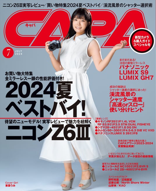 夏の新製品が続々登場! 注目モデルのニコンZ6IIIやパナソニックLUMIX S9など、「NEWカメラ&レンズ 夏フェス!」として一挙大公開します。特集は「カメラ・機材購入 2024夏ベストバイ」をお届け。カメラ、レンズ、写真用品、PC周辺機器など今夏のお買い物を強力にサポートします。カメラは全ミラーレス一眼の評価付き。さらに、渓流&滝の撮影テクニック「水風景撮影は”高速”or”低速”シャッターでメリハリよく攻める!」や、「CAPA AWARD 2023-2024」受賞製品も発表します。CAPA 7月号もカメラ・写真を楽しむための記事が満載です。
