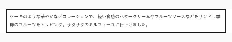 今後も季節ごとに、旬のフルーツをあわせた新作のフルーツミルフィーユを展開していきます。