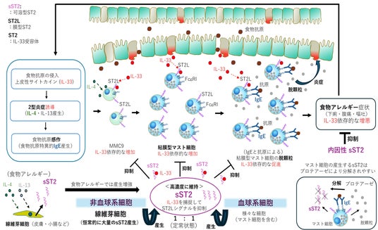 以上の結果から、内因性sST2が食物アレルギーを抑制するメカニズムが明らかになりました(図1)。