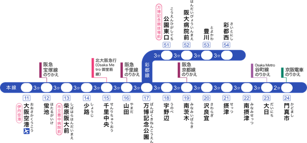 大阪モノレールは、日本のモノレールで1番長い総延長28キロ・18駅を結ぶ路線で、大阪府の放射状に伸びる鉄道網と接続する移動手段として、1日13万人のお客さまにご利用いただいています。また、大阪空港駅は大阪国際(伊丹)空港に直結しており、空港をご利用される方の空の玄関口となっています。