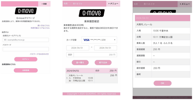 QUADRACのQ-moveサイトにアクセスし、「マイページ」の会員登録手続きが完了しますと確認可能です。