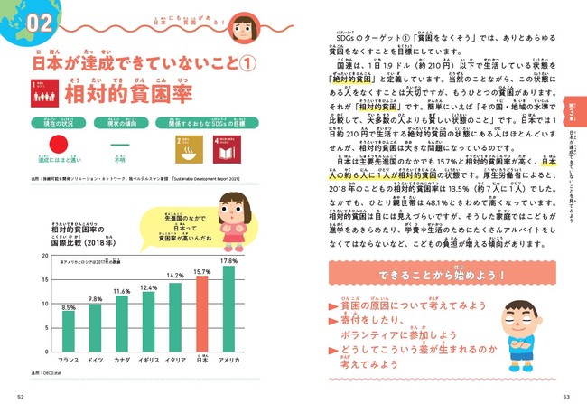 12月20日(月)に発売予定の書籍『親子で学ぶ SDGs 日本人が今、やらないといけないことがわかる本』(扶桑社)では、SDGsの17の目標のうち「何が達成できていないのか」「どんなことをすればいいのか」を、親子で学べるように構成されています。