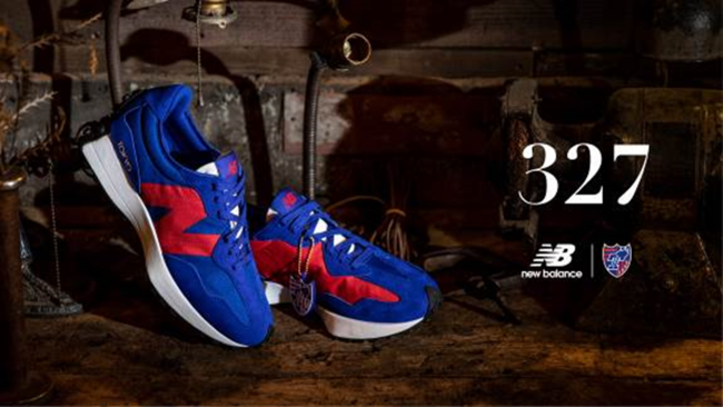 1970年代のニューバランスランニングシューズを代表する3つのモデルを元に2020年に生まれた「327」。フレアソール、踵部のアウトソールの巻き上げ、ラギッドなアウトソールのレトロなイメージに、オーバーサイズのNロゴが特徴のシューズです。今回はFC東京カラーに合わせて、大胆なカラーブロックで配された青赤が印象的な一足です。ペアでコーディネートを楽しめるユニセックスサイズで展開。