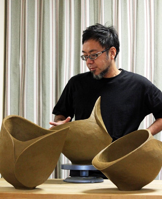 陶芸家・田上真也は1976年京都府生まれ。大学卒業後は社会人として働く一方で、新たに京都嵯峨芸術大学短期大学部美術学科陶芸コースで学び、2003年に卒業しました。以降2017年まで同大学の講師を務め、現在も京都にて制作を行っています。