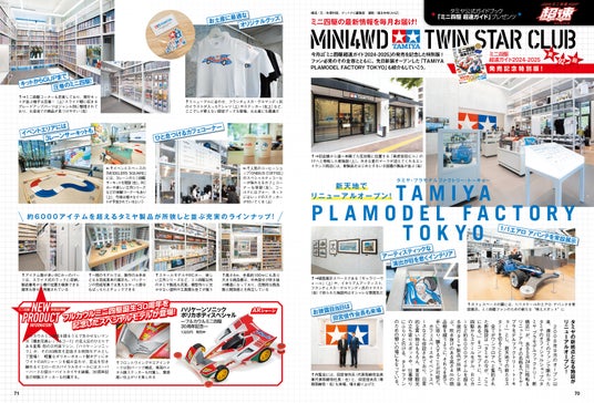 またGetNavi8月号では、タミヤ公式ガイドブック「ミニ四駆 超速ガイド」発売を記念し、通常連載の特別版を。新装オープンした「TAMIYA PLAMODEL FACTORY TOKYO」を紹介します。