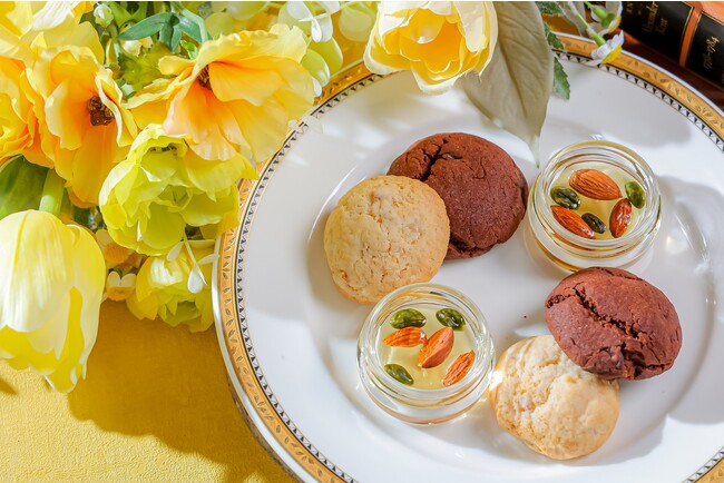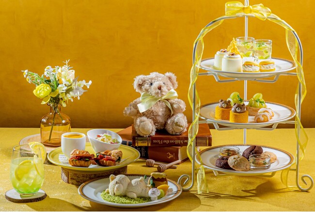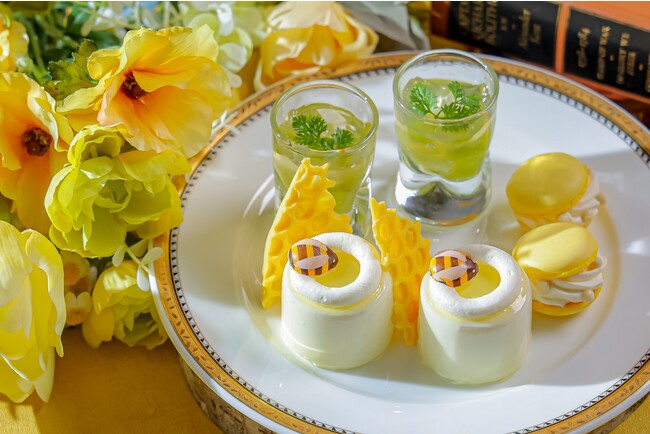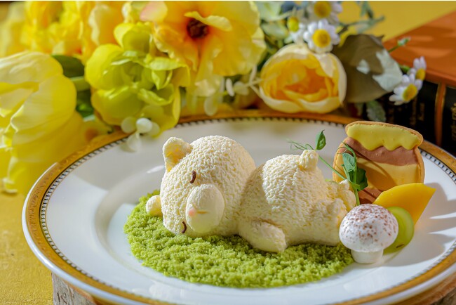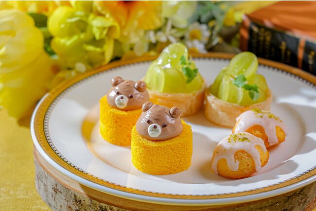 キュートな‟くまさん”がアイコンのオレンジ味のロールケーキ、爽やかな酸味のレモンの焼き菓子やマカロン、はちの巣をイメージしたムース、コンディメントのはちみつナッツでお召し上がりいただく2種のスコッキーなどのスイーツと、軽食をお楽しみいただけます。オプションスイーツは、森の中でお昼寝中の‟くまさん”をイメージしたレモンヨーグルトのムースをご用意。愛犬の同伴も可能なので、一緒に過ごせるスイーツタイムが特別なひとときを演出します。