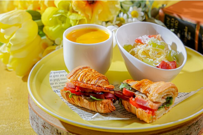 【セイボリー】クロワッサンのハニーマスタードBLTサンド/カボチャの冷製ポタージュ シナモンの香り/マスカットと生ハムの冷製カッペリーニ