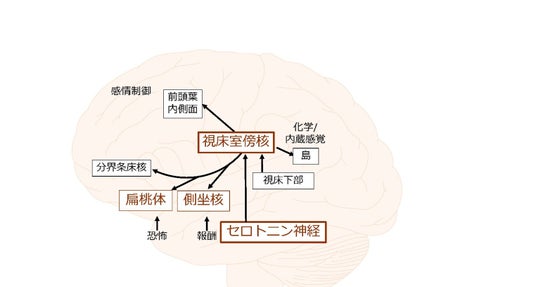 *2 視床上部:視床、視床下部と共に、間脳の一部を構成している脳領域。他に松果体、手綱核が含まれ、生体リズム、ストレス反応、感情の制御などに関わると考えられている。