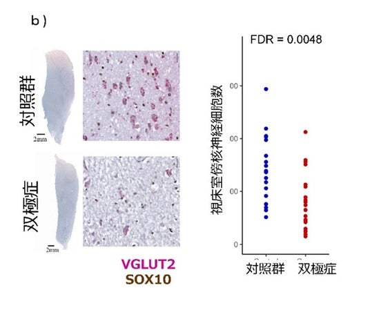 a) 試料はケベックブレインバンクの双極症患者21名、対照者20名の凍結死後脳(視床、大脳皮質)