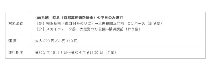 ~109 系統 特急、BAYSIDE BLUE、あかいくつ、ピアライン、ぶらり三溪園 BUS~