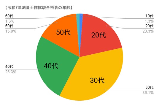 測量士補試験合格者の年代別の割合