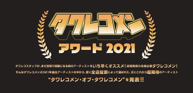 タワーレコードでは、2021年にタワレコメンに選ばれたアーティストを対象に当社全店舗の代表バイヤーによる投票を行い、その中でもっとも得票数の多かった5アーティストに「タワレコメン・アーティスト・オブ・ザ・イヤー」を授与することとなりました。