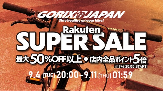 GORIX株式会社(所在地:大阪市東淀川区、代表取締役:長野明)の自転車パーツブランド「GORIX」が、楽天市場店にて9/4(木)20:00~9/11(木)01:59に楽天スーパーSALEを開催。人気のサイクル商品が「最大96%OFF」となる楽天市場店でのビッグセールです。