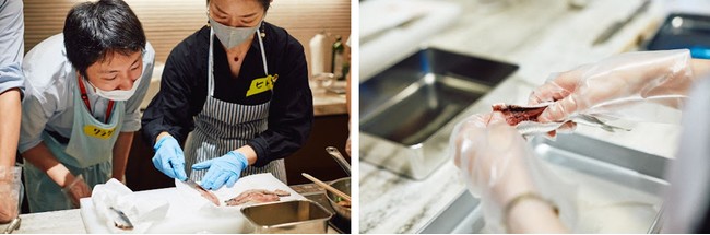 今回の企画は、海の食材を用いた料理を演劇メソッドを盛り込みながら作ることで、チームワークを高め、海を感じ、味わいながら参加者の皆さんと共に”海のものがたり”に触れる機会をつくりたいという目的のもとで、三菱地所株式会社が推進する食育プロジェクトEAT&LEADとコラボレーションしたイベントです。