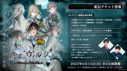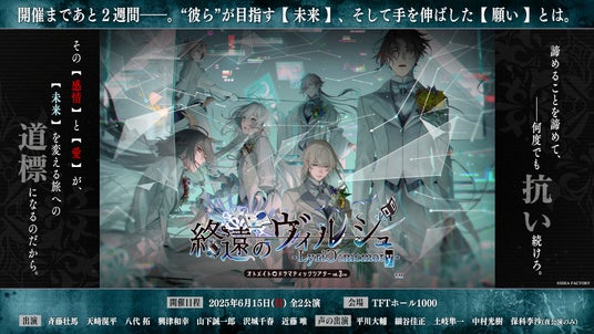 前回は約2年前の2023年7月2日(日)に開催し、初作(「終遠のヴィルシュ -ErroR:salvation-」)をベースにサブキャラクターの心の裡や、その裏側では何が起こっていたのか、という本編では見ることの出来なかった部分にフォーカスを当て、彼らの【 記憶(メモリー) 】を辿りながら、それぞれの【 終焉 】に至る【 絶望 】と【 救済 】の物語をお届けいたしました。