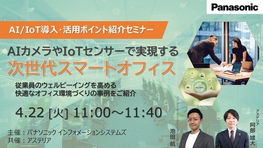 本セミナーでは、AIカメラやIoTセンサーを活用した次世代オフィスの事例を交え、快適なオフィスづくりのポイントをご紹介します。